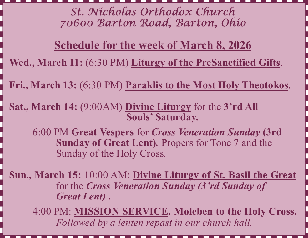 If you are looking for a Church that is family-oriented, Orthodox in doctrine, Orthodox in worship and Orthodox in values, perhaps you are looking for the Orthodox Church. On behalf of our parishioners, I invite you to join us this Sunday. Our worship is out of this world!